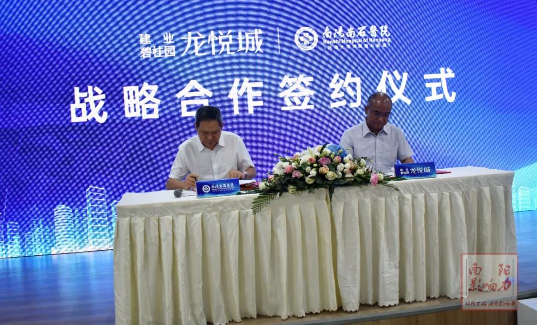 9月4日,建業(yè)碧桂園·龍悅城攜手南石醫(yī)院共建全新康養(yǎng)社區(qū)戰(zhàn)略合作簽約儀式成功舉行,南石醫(yī)院黨委書記、院長趙俊祥,南石醫(yī)院財(cái)務(wù)總監(jiān)陸月棧、南石醫(yī)院門診部主任喬彥華、建業(yè)地產(chǎn)副總裁、兼西部大區(qū)副總經(jīng)理、兼南陽城市公司總經(jīng)理、兼龍悅城項(xiàng)目總經(jīng)理張立華,建業(yè)碧桂園龍悅城項(xiàng)目副總經(jīng)理申雙清,建業(yè)地產(chǎn)西部大區(qū)營銷管理部副經(jīng)理史傳光,以及20余家媒體蒞臨現(xiàn)場,共同見證了這場地產(chǎn)+醫(yī)療跨界演繹的盛事。