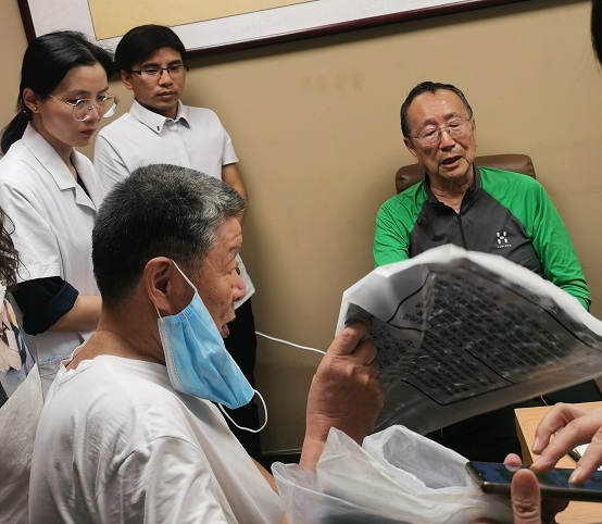上午8時(shí),胡大一教授來到南石醫(yī)院門診部坐診,他耐心詢問了兩名患者的發(fā)病史及生活方式后,為患者開具了藥物、戒煙、早期運(yùn)動(dòng)、心理及營養(yǎng)等處方,每名患者大約耗時(shí)30分鐘。這才真叫看病,不像有些醫(yī)生,問上三兩句就讓做這檢查那檢查,胡大一教授光問,就把我父親的病問清了。其中一名患者的家屬說,他父親得病有10年了,聽了胡大一教授的問診,感覺很有道理。胡大一教授時(shí)刻為患者著想、嚴(yán)謹(jǐn)治學(xué)、開拓創(chuàng)新的精神值得我們醫(yī)護(hù)人員終身學(xué)習(xí)。南石醫(yī)院門診部主任喬艷華說。 在結(jié)束兩名患者問診后,胡大一教授健步來到南石醫(yī)院科研教學(xué)樓。胡大一教授從進(jìn)入南石醫(yī)院大門開始,一分鐘都沒有休息,有電梯他也不坐,全部是走樓梯,他堅(jiān)持每天步行突破20000步。南石醫(yī)院醫(yī)務(wù)部主任李雪銀說,從一天的接觸中可以看出,胡大一教授用實(shí)際行動(dòng)踐行著自己提出的管住嘴、邁開腿。