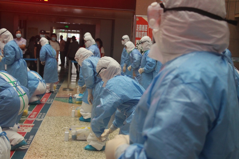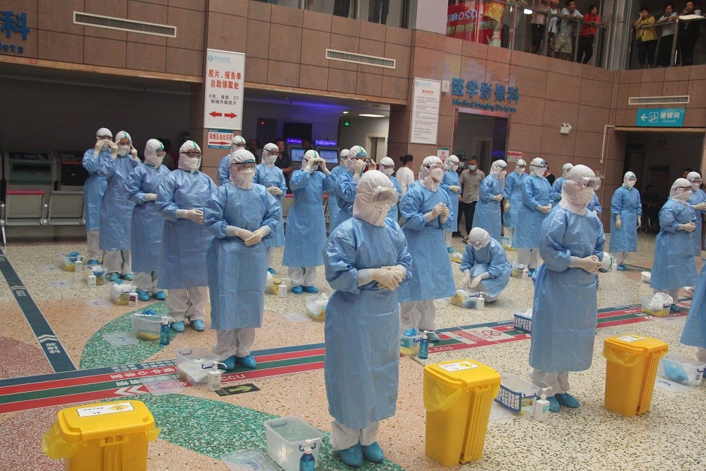 通過模擬接診一名來自中高風(fēng)險(xiǎn)區(qū)的發(fā)熱病人,演練預(yù)檢分診接診流程,預(yù)檢分診和發(fā)熱門診交接流程,發(fā)熱門診接診就診流程,發(fā)熱門診鼻咽拭子采樣流程,發(fā)熱門診留觀流程和終末消毒流程。
