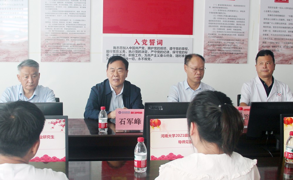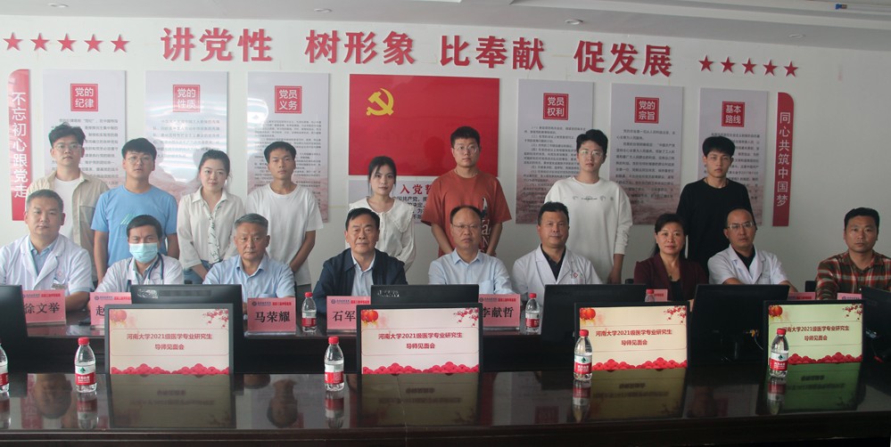 9月29日下午,2021級醫(yī)學專業(yè)研究生與導師見面會在河南大學附屬南石醫(yī)院在科研教學樓三樓會議室舉行。河南大學碩士生導師、南石醫(yī)院黨委書記、院長趙俊祥教授在參加南陽市黨代會期間對本屆研究生寄語希望。河南大學神經(jīng)病學碩士生導師、常務副院長石軍峰教授,腫瘤學碩士生導師、執(zhí)行院長李獻哲教授,神經(jīng)外科碩士生導師、副院長馬榮耀教授,整形外科碩士生導師、副院長李天宇教授及心血管病學導師趙林明,骨科專業(yè)導師張高峰,燒傷整形專業(yè)導師徐文舉等導師和2021級8名河南大學臨床專業(yè)研究生參加了見面會。