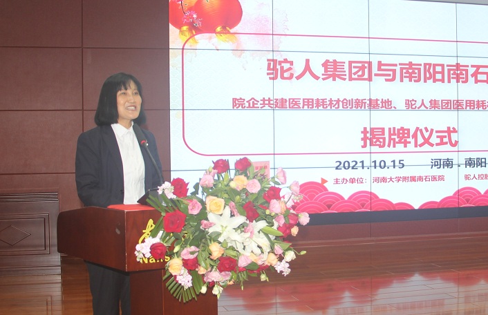 南陽市市場監(jiān)督管理局高新分局黨組書記陳馨菊局長,駝人集團(tuán)副總裁王瑞,南石醫(yī)院黨委書記院長趙俊祥分別在揭牌儀式上講話。