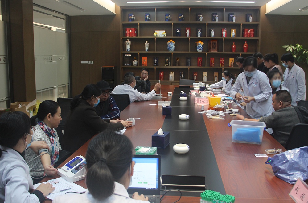 當(dāng)天上午,南石醫(yī)院專家團(tuán)隊(duì)和20余名醫(yī)護(hù)人員到賒店酒廠,為該企業(yè)員工開(kāi)展義診、腦卒中篩查和五癌篩查,并組織專家現(xiàn)場(chǎng)舉辦健康講座。賒店酒廠近百名員工參與活動(dòng)。