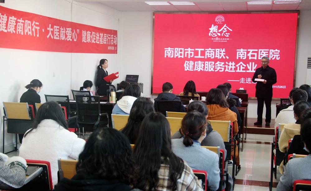 南陽市工商聯(lián)三級(jí)調(diào)研員陳冬介紹,“健康服務(wù)進(jìn)企業(yè)”系列活動(dòng)是市工商聯(lián)助力“萬人助萬企”活動(dòng)的具體落實(shí)和實(shí)際行動(dòng),也是提升服務(wù)質(zhì)量、創(chuàng)新服務(wù)方式的具體舉措。依托南石醫(yī)院的優(yōu)質(zhì)醫(yī)療資源,幫助企業(yè)員工樹立科學(xué)的防病治病理念,指導(dǎo)員工踐行健康的生活方式,為員工健康護(hù)航,為企業(yè)發(fā)展助力。市工商聯(lián)也將進(jìn)一步發(fā)揮橋梁紐帶作用,創(chuàng)新服務(wù)載體,搭建服務(wù)平臺(tái),努力提升服務(wù)能力和服務(wù)水平,以實(shí)際行動(dòng)服務(wù)更多企業(yè)高質(zhì)量發(fā)展。