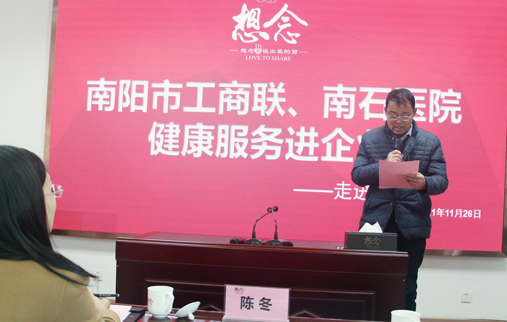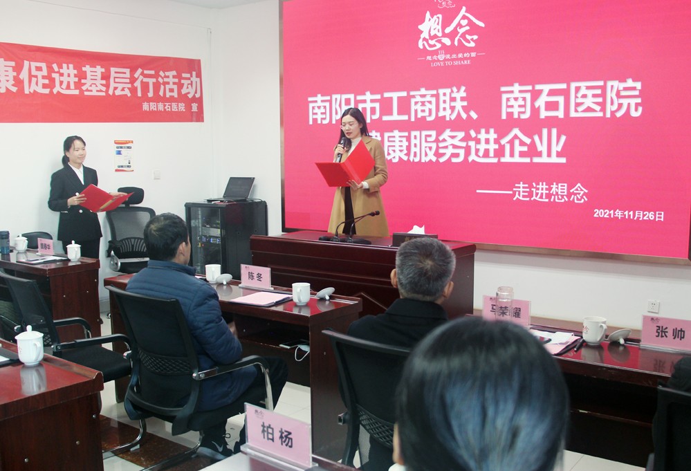 11月26日上午,由南陽市工商聯(lián)主辦,南石醫(yī)院承辦的“健康服務(wù)進(jìn)企業(yè)”活動(dòng)第三站,走進(jìn)想念集團(tuán),為該企業(yè)職工送上免費(fèi)的健康體檢和專家診療,助力企業(yè)高質(zhì)量發(fā)展。市工商聯(lián)三級(jí)調(diào)研員陳冬,南石醫(yī)院業(yè)務(wù)副院長馬榮耀,想念集團(tuán)副總經(jīng)理張珍等參加活動(dòng)并講話。