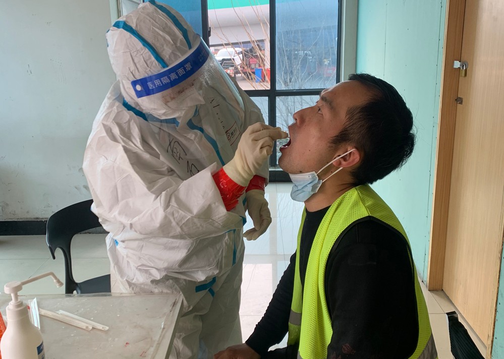 部分護(hù)理人員夜晚在寒風(fēng)中采樣