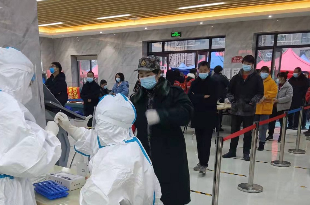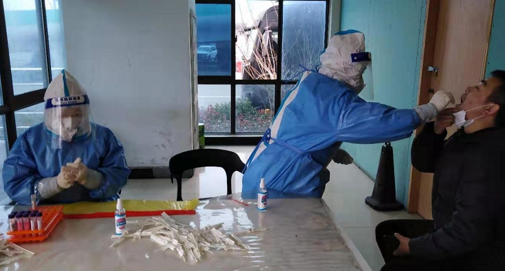 南石醫(yī)院接到南陽(yáng)某小區(qū)采樣任務(wù),立即組織護(hù)理人員奔赴小區(qū)。數(shù)九寒天,他們一站就是大半夜,有的護(hù)理人員第二天不休息繼續(xù)到院投入防控第一線,拼盡最大能力阻斷傳播,為百姓創(chuàng)造一方安寧。