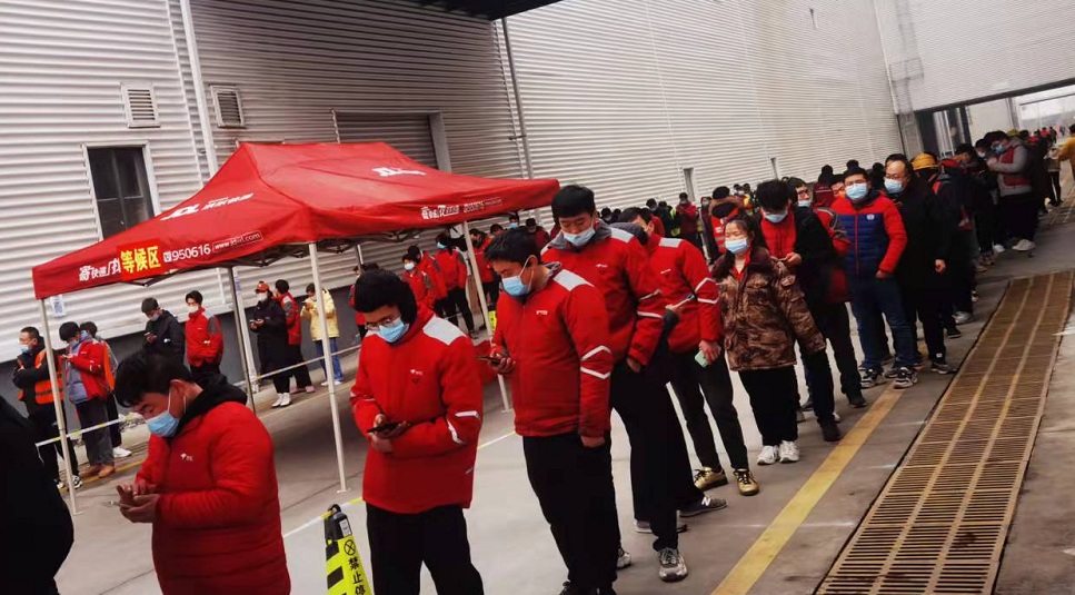 今天凌晨3點(diǎn)半,南石醫(yī)院采樣團(tuán)隊(duì)抵達(dá)鄭州經(jīng)濟(jì)技術(shù)開(kāi)發(fā)區(qū)休息點(diǎn),早上6:10分就餐、6:50點(diǎn)名、7點(diǎn)出發(fā)奔赴采樣區(qū)。在出征微信群里看到:“今天上午9點(diǎn)南陽(yáng)高新區(qū)的80名護(hù)士分別到鄭州市經(jīng)開(kāi)區(qū)前程辦事處的28個(gè)采樣點(diǎn)采樣,下午3點(diǎn)必須完成。中午簡(jiǎn)餐,大家要抓緊時(shí)間?!蹦鲜t(yī)院帶隊(duì)領(lǐng)導(dǎo)楊彩麗主任在群里發(fā)消息說(shuō),兩人一組,今天每組要采集平均應(yīng)在1000人以上,希望大家保質(zhì)保量完成任務(wù)!