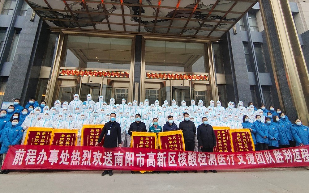 13日下午4點,南石醫(yī)院32名護理人員登上了回南陽的專車。就在出發(fā)之前,護理人員又收到鄭州市經(jīng)濟技術開發(fā)區(qū)管理委員會前程辦事處錦繡黨群服務中心檢測點送來的感謝信。