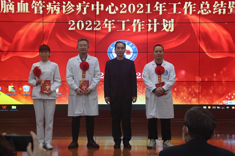 總結(jié)會上,對2021年表現(xiàn)突出的個人進行頒獎。院長趙俊祥在最后講話中對腦中心高級卒中中心建設(shè)給予了充分肯定,,2021年,綜合排名在全國屢創(chuàng)新高,最后一個月,更是業(yè)績喜人。這些業(yè)績的的取得,是腦中心全體人員勇毅擔當、直面挑戰(zhàn)、砥礪奮進的結(jié)果,趙院長希望腦中心保持定力,乘勝前進,力爭在來年再創(chuàng)佳績!