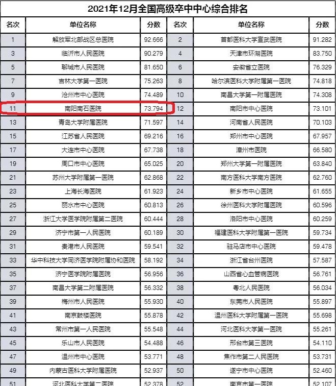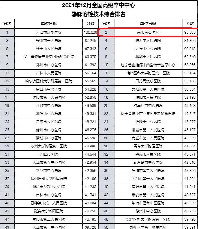 南石醫(yī)院腦血管病診療中心是南陽市唯一省級重點學(xué)科。通常,南陽人只要患腦血管病,首先想到的就是南石醫(yī)院。就在1月25日上午,醫(yī)院又收到了一條好消息:南石醫(yī)院高級卒中中心建設(shè)在2021年12月份全國597家醫(yī)院排名中位居11位,區(qū)域領(lǐng)先;靜脈溶栓全國第二。這樣好的成績,是南石醫(yī)院以石軍峰院長為首的團隊不歇努力,拼搏進取的結(jié)果。