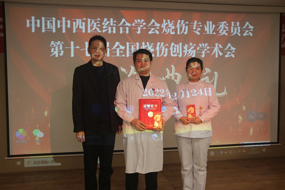 中國中西醫(yī)學(xué)會燒傷專業(yè)委中會第十七屆全國燒傷創(chuàng)瘍學(xué)術(shù)會已經(jīng)于去年12月份召開。會上,河南大學(xué)附屬南石醫(yī)院創(chuàng)面修復(fù)中心名譽主任丁明華教授向大會做了《創(chuàng)瘍再生醫(yī)療技術(shù)在中國特色創(chuàng)面修復(fù)中的重要作用和地位》的專題報告;燒傷整形科楊洪教授作了《燒傷創(chuàng)瘍再生醫(yī)療技術(shù)在河南大學(xué)附屬南石醫(yī)院的發(fā)展之路》專題分享,收到了極好的現(xiàn)場效果。會上,南石醫(yī)院多名醫(yī)師獲獎,由于疫情,中國中西醫(yī)結(jié)合學(xué)會燒傷專業(yè)委員會在南石醫(yī)院舉辦了簡單的頒獎儀式。