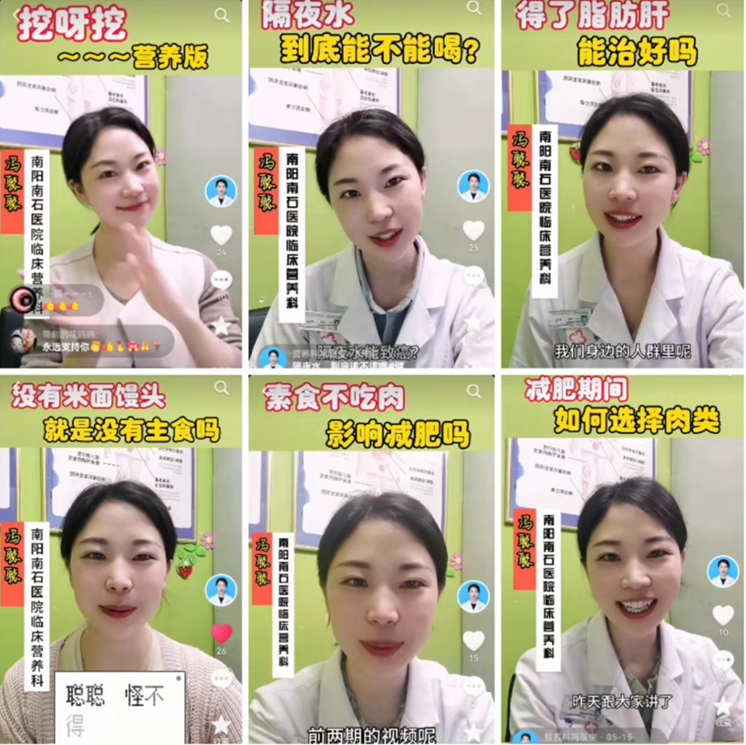 利用當(dāng)下短視頻覆蓋群體廣泛的特點(diǎn),營養(yǎng)周期間,我院臨床營養(yǎng)科馮聰聰主任精心錄制科普短視頻,通過抖音、視頻號、微信群等多種渠道傳播,旨在利用網(wǎng)絡(luò)使更廣泛的人群受益,學(xué)會合理膳食、學(xué)會食養(yǎng),倡導(dǎo)大家樹立“每個(gè)人都是自己健康的第一責(zé)任人”的良好觀念。