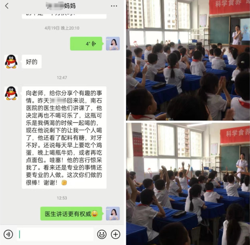 5月16日,我院臨床營養(yǎng)科受邀走進(jìn)校園,圍繞“科學(xué)食養(yǎng),助力兒童健康成長”為師生帶來了一場生動(dòng)的科普講座,講座現(xiàn)場,馮聰聰主任利用兒童膳食寶塔和兒童膳食算盤兩張彩圖,生動(dòng)形象的教會了孩子們合理搭配食物、谷類為主、粗細(xì)搭配、適量魚禽蛋瘦肉、每天適量奶類、大豆或其制品、少鹽少油少糖等膳食要點(diǎn)。本次活動(dòng)通過通俗易懂的語言、生動(dòng)形象的向同學(xué)們傳遞平衡膳食的健康知識,助力培養(yǎng)他們的健康飲食行為和生活習(xí)慣,從而做到科學(xué)食養(yǎng),健康成長。課后還收到了學(xué)生家長的良好反饋。