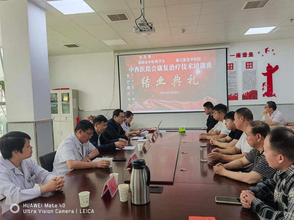 5月25日上午,南陽市中醫(yī)藥學(xué)會、南石康復(fù)中醫(yī)院中西醫(yī)結(jié)合康復(fù)治療技術(shù)培訓(xùn)班第二期結(jié)業(yè)典禮在南石康復(fù)中醫(yī)院順利召開。