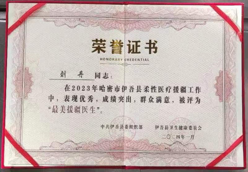 作為河南省第十五批援疆醫(yī)療隊(duì)在員之一,劉丹醫(yī)師被分配在哈密市伊吾縣淖毛湖鎮(zhèn)中心衛(wèi)生院。“在援疆期間,一直在基層衛(wèi)生院工作,那里環(huán)境條件有限,沙塵暴大,有幾個(gè)大的工業(yè)企業(yè),每天要面對(duì)各種突發(fā)情況,從化學(xué)氣體中毒、燒傷、車禍、腦卒中到心梗等,需要以最快的速度、最專業(yè)的技能去救治每一個(gè)病人,有時(shí)候,病人病情危急,亦或人員繁多,需要我們連續(xù)作戰(zhàn),但每當(dāng)看到病人轉(zhuǎn)危為安,我們內(nèi)心的喜悅和滿足無(wú)法用言語(yǔ)來(lái)表達(dá)。”劉丹醫(yī)生說(shuō),作為每一名援疆醫(yī)生,我們都是帶著當(dāng)?shù)卣驮侯I(lǐng)導(dǎo)們的重托和厚望踏上去新疆的征程,無(wú)論環(huán)境怎么樣,條件如何,大家都能克服困難,完成任務(wù),不辜負(fù)領(lǐng)導(dǎo)們的重托。劉丹在援疆期間,主要負(fù)責(zé)24小時(shí)門急診(院前急救)值班、臨床帶教、社區(qū)義診等等。劉丹醫(yī)生說(shuō):“作為一名急診援疆醫(yī)師,我在這里度過(guò)了一段難忘的工作生活,不僅收獲了寶貴的經(jīng)驗(yàn),更深刻地認(rèn)識(shí)到了醫(yī)務(wù)工作者的使命與擔(dān)當(dāng),同時(shí)在實(shí)踐中也深刻感受到了國(guó)家對(duì)新疆發(fā)展的重視和支持以及各族人民的團(tuán)結(jié)和諧氛圍等,都在激勵(lì)著我不斷前行。”