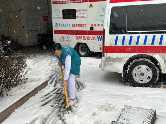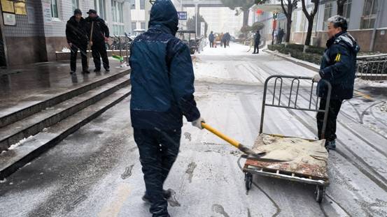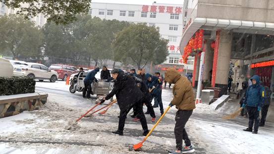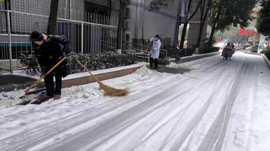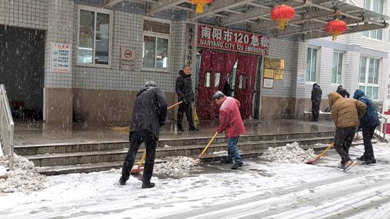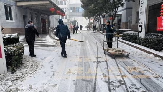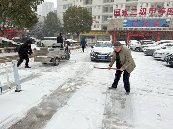 2月21日,南陽(yáng)市氣溫驟降,天寒地凍,一場(chǎng)大雪讓天地之間呈現(xiàn)了童話般的美妙,但卻給來(lái)院就診的患者及家屬帶來(lái)諸多不便和安全隱患。為暢通就診通道,南石醫(yī)院采取多種措施保障就醫(yī)安全。一大早,分管行政后勤副院長(zhǎng)梁紅春組織后勤部門(mén)人員快速行動(dòng),鏟雪灑鹽。
