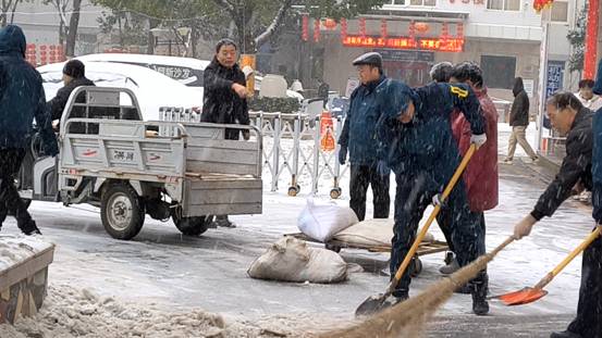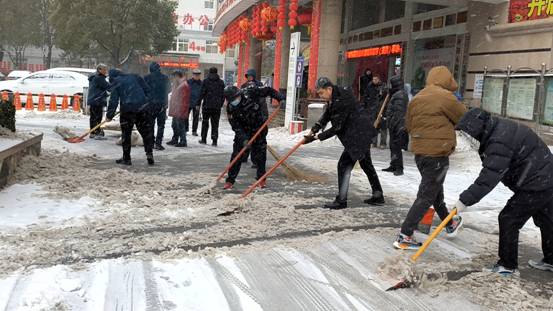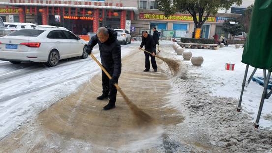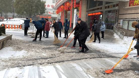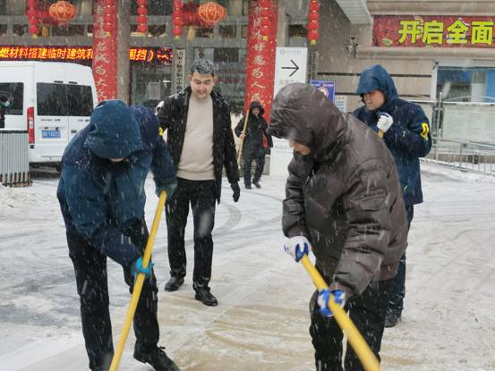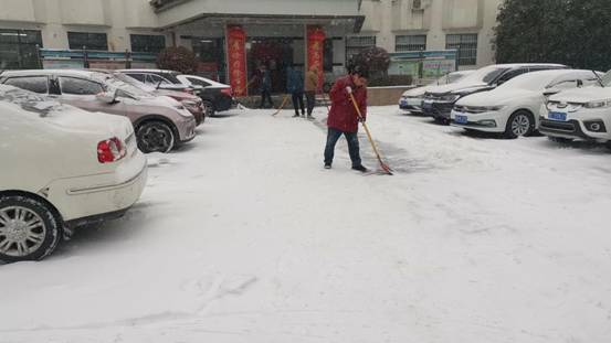 鐵锨、掃帚、簸箕等等,能用的工具都用了,后勤人員不畏嚴(yán)寒,紛紛加入清理積雪的隊(duì)伍,經(jīng)過(guò)一個(gè)多小時(shí)的共同努力,大家手凍僵了、臉凍紅了、頭發(fā)上雪花結(jié)成了冰,卻沒(méi)有一個(gè)人說(shuō)苦叫累,后勤人員忙碌的身影在漫天飛舞的雪花中構(gòu)成了一道亮麗的風(fēng)景線。
